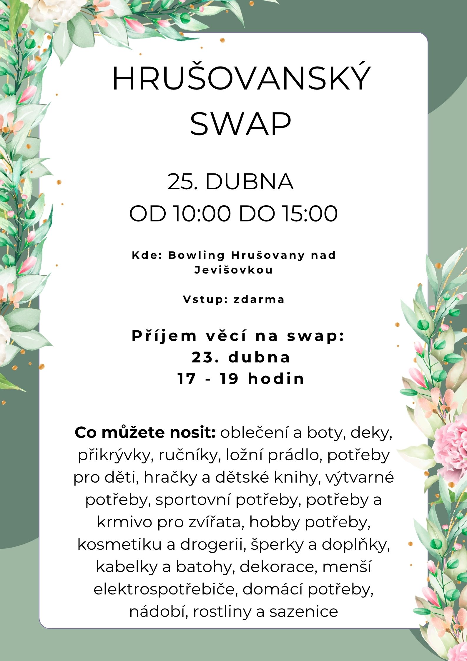 Srdečně zveme na SWAP. Více informací nalezenete v příloze. Pokud chcete něco darovat, můžete kontaktovat naši paní asistentu Romanu Kachlíkovou. Děkujeme